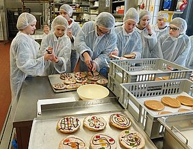 Brezen werfen, Amerikaner verzieren und dabei erfahren, wie Bäcker heute arbeiten, das konnten die Schülerinnen und Schüler der Tertia bei ihrem Besuch in der Duracher Landbäckerei Sinz. Sie besichtigten die Bäckerei im Rahmen der Allgäuer Berufsoffensive.